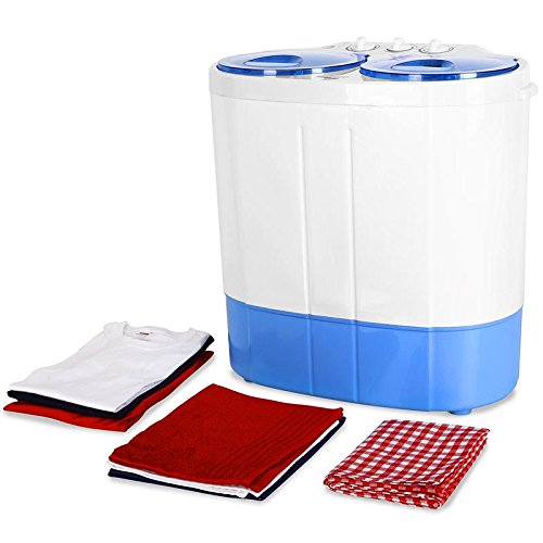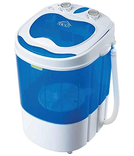 È una mini lavatrice portatile da campeggio abbastanza completa. Ha poche ma essenziali funzioni come due programmi, uno dei quali per i capi delicati e la centrifuga. Il timer permette di impostare il lavaggio e la centrifuga fino a 15 minuti. La potenza di lavaggio è di 250 W mentre quella per la centrifuga di 120 W. La capacità di carico è di 2 kg, un po’ pochi secondo noi considerato che ci sono modelli con capacità maggiore.