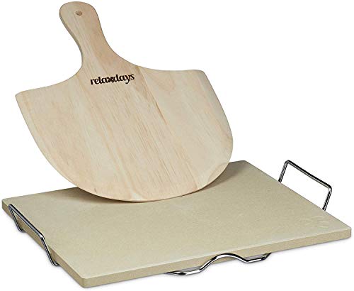 5. Relaxdays Set Pizza con Pietra in Cordierite e Pala in Legno