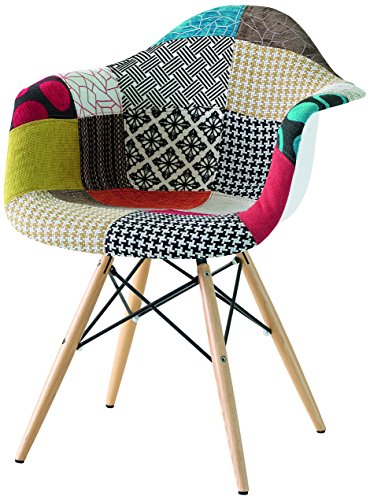 La seduta di questa poltrona di Fashion Commerce è caratterizzata da un tessuto patchwork, ovvero un insieme di colori e trame differenti. La struttura è in resistente metallo nero, mentre le gambe sono in pregiato legno di faggio, un’unione di brio nella stanza alla quale è destinata.