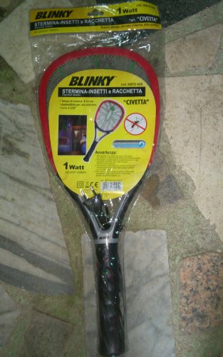Un altro strumento di sterminio molto apprezzato dagli acquirenti è la Blinky, una racchetta ammazza zanzare ricaricabile; alimentata cioè da due batterie di tipo AA, ma invece delle normali zinco-carbone usa e getta è dotata di quelle al nichel-metallo idruro, che sono appunto ricaricabili.
