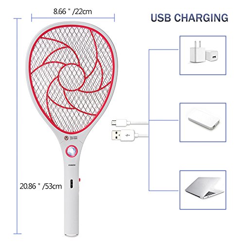 Il design è similare, così come la disponibilità delle combinazioni di colore; per quanto riguarda le prestazioni offre la stessa potenza in uscita, 3.000 Volt, ed è alimentata dallo stesso tipo di batteria, ricaricabile tramite il cavo USB fornito in dotazione; secondo gli acquirenti è una racchetta per zanzare efficiente e comoda da usare, grazie alla tecnologia USB e alla luce LED integrata.