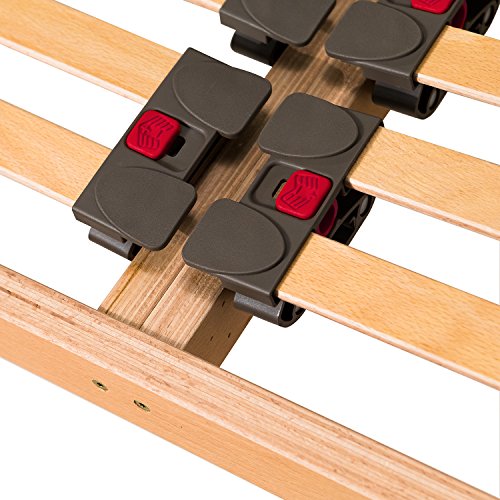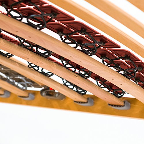 Un’altra caratteristica è che si tratta di una rete matrimoniale a doghe larghe, indicata quindi per chi ha bisogno di un sostegno maggiore e di una rigidità più valida. Quelle a disposizione sono sette, da 170 mm e in solido legno di faggio.