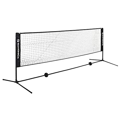La rete da tennis e badminton di Songmics ha una lunghezza pari a 4 metri. L’altezza, invece, può essere regolata su tre diversi livelli di altezza, da un minimo di 105 a un massimo di 155 centimetri. Il montaggio è molto semplice e può essere completato in pochi minuti grazie anche alle istruzioni allegate, non dovrete temere quindi di iniziare la vostra partita in ritardo.