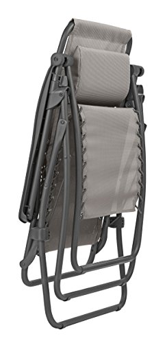 L’elevato comfort della sdraio Lafuma è assicurato anche dalla presenza di un poggiatesta con cuscino imbottito, e dalle numerose regolazioni concepite in collaborazione con medici ed esperti; tanto per fare un esempio, infatti, la particolare posizione reclinata con angolo di 127° fa sì che le ginocchia si trovino al di sopra dell’altezza del cuore, favorendo al massimo la circolazione sanguigna.