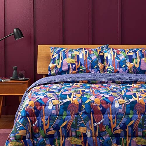 Originale e molto colorato il disegno che richiama una serie di uccelli tropicali. La trapunta è double face e il retro è in tinta unità. Per quanto riguarda i materiali, quello della parte esterna è 100% tela di puro cotone pettinato, scelta che la rende estremamente morbida a contatto con la pelle. L’imbottitura, anch’essa anallergica, è da 320 g/m²