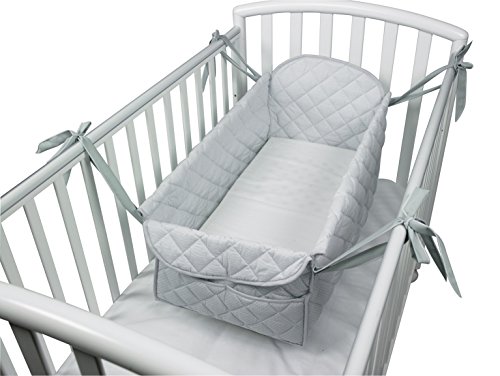 Si può mettere anche dentro la navicella, la componente del trio che fa da culla. Così da ridurre ulteriormente lo spazio e renderlo ancora più accogliente e protettivo. Si può usare per creare una separazione netta all’interno del lettone e rendere più semplice il co-sleeping senza paura da parte dell’adulto di far male al piccolo involontariamente.