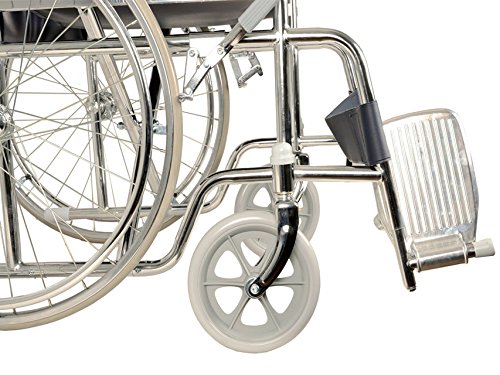 Una sedia a rotelle ideale per soddisfare le esigenze di persone anziane o di pazienti che hanno da poco avuto un intervento. Garantisce sicurezza e ottima stabilità grazie alla struttura in acciaio che la rende molto resistente. La struttura è pensata per offrire comodità e praticità a chi la utilizza. Supporta un peso massimo di 110 chili e la seduta è di 46 cm. Tra gli altri dettagli, da segnalare il rivestimento in nylon lavabile e una tasca portaoggetti sullo schienale.