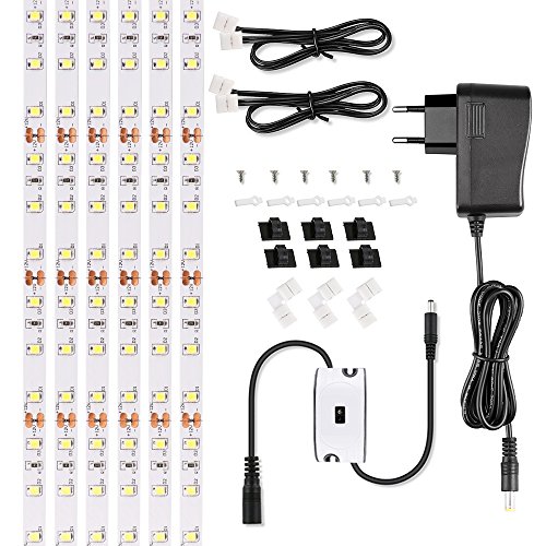 Rendere la propria cucina un ambiente di tendenza è possibile grazie alle strisce led. Questo oggetto può essere scelto in diverse lunghezze e tagliato per essere adattato al mobile da decorare. Il colore della luce potrà essere il tradizionale bianco oppure una combinazione di tonalità che renderanno la stanza molto moderna. Considerate la potenza, indispensabile per illuminare bene o semplicemente per creare atmosfera. L’alimentazione deve garantire sicurezza ma anche la libertà di poter attaccare e staccare la corrente. Nella nostra guida potete trovare molti suggerimenti per effettuare una giusta scelta. Intanto, ecco quali sono i nostri prodotti preferiti: Simfonio 5m-150leds-pas etanche ha un buon rapporto qualità/prezzo e assicura il massimo controllo, grazie al telecomando incluso nella confezione. Ci ha colpito anche Ustellar UT66606-WW-EU, dalla vivida luce bianca e dotato di alimentatore che ne garantisce un sicuro funzionamento.